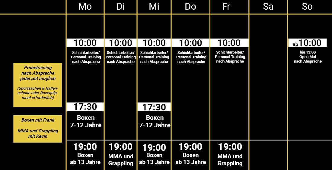 Über uns Die Fabrik Events Training Tickets Kontakt Menü Über uns Die Fabrik Events Training Tickets Kontakt 0,00 € 0 Warenkorb Sportfabrik Hückelhoven e.V. Sportfabrik Hückelhoven e.V. Über Uns Die Sportfabrik Hückelhoven e.V. wurde als Kampfsportverein im August 2019 gegründet Ziel dieses Vereins ist es allen Interessierten jeder Altersgruppe eine fundierte Kampfsportausbildung im Boxen, MMA und Grappling anzubietenLizenzierter Amateur und Profi-Trainer Frank WoltersLizenzierter MMA und Grappling Trainer Kevin Krampseit dem Juli 2023 in eigener Trainingshalle an der Myhler Straße 81 in 41836 Hückelhoven1. Vorsitzender Frank Wolters2. Vorsitzender Christian TenidisKassiererin Anita Kichel Vorheriger Slide Nächster Slide Die Fabrik events Training Kontakt Name E-Mail Nachricht Senden e-mail: sportfabrik1@gmail.com Impressum Datenschutzerklärung Facebook Instagram Sportfabrik Hückelhoven e.V.Myhler Straße 8141836 HückelhovenVertreten durch1. Vorsitzender Frank Wolters Mitglied in den Verbänden: